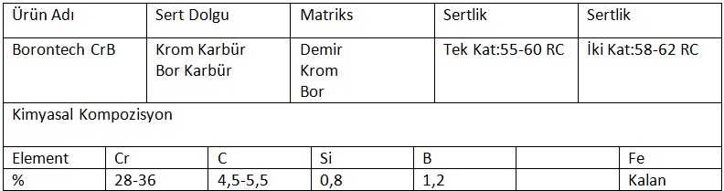 Çimento, Enerji, Demir Çelik, Cam ve Maden sanayinde şiddetli aşınma ve orta şiddette darbe  ortamlarında ; Değirmen iç kaplamalarında  , Silo, Şut , Akış olukları, Siklon , Boru , Seperatör imalatlarında 400 C kadar olan ortam sıcaklıklarında kullanılır.İçeriğindeki Krom Karbür  ve  Kompleks Bor Karbürler  nedeniyle aşınma dayanımı oldukça fazladır.Aşınma ile mücadelede Fiyat/Fayda oranı açısından en uygun malzemedir.Aynı Kalınlıktaki ısıl işlemli sert saclara göre aşınmaya 3-4 kat daha dayanıklıdır.