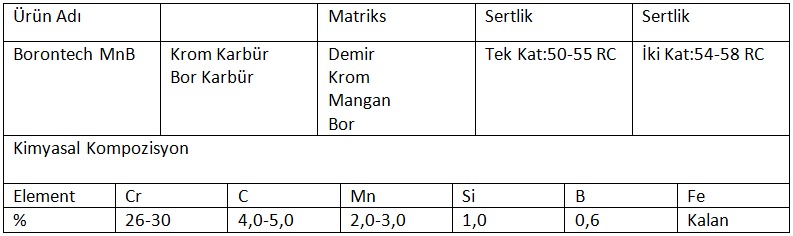 Şiddetli ve orta şiddetli Darbeli ortamlarda Çimento, Enerji, Demir Çelik, Maden sanayinde ; Kırıcı ve Değirmen iç kaplamalarında , Tahliye zemin plakalarında , iri , orta ve ince parçalı darbeli Kaya , Kömür , Maden gibi malzemelerin etkisine maruz kalan Şut , Akış olukları, Siklon , Boru , Seperatör imalatlarında kullanılır.İçeriğindeki Mangan elementi sayesinde aşınmanın yanı sıra kısmen darbeyede dayanıklıdır.Matriksdeki Mangan matriksin Tokluğu ve aşınma dayanımınıda önemli ölçüde arttırmaktadır.